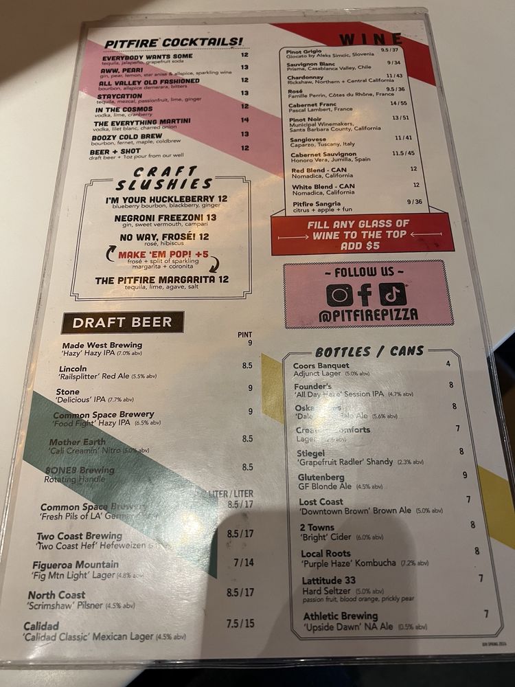 Pitfire Pizza Woodland Hills Menu (Update 2025)