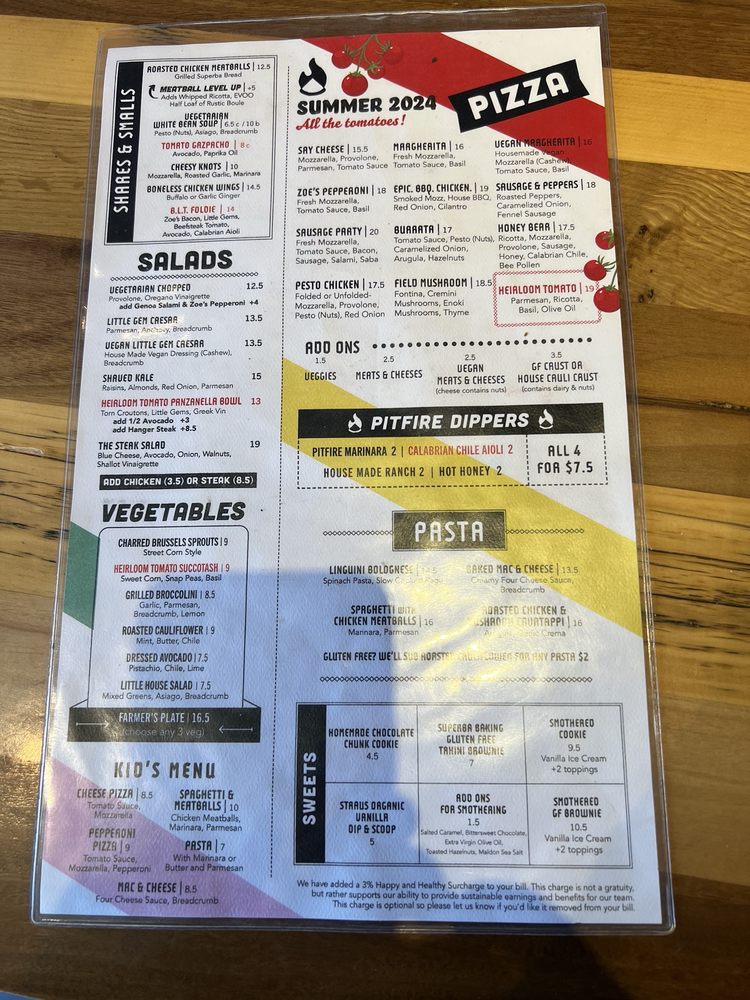 Some of our greatest hits... Classic Chopped Salad w/Oregano Vin, Say Cheese Pizza, Zoe's Pepperoni Pizza, Baked Mac & Cheese, 2 Chocolate Chip Cookies. *No Substitutions